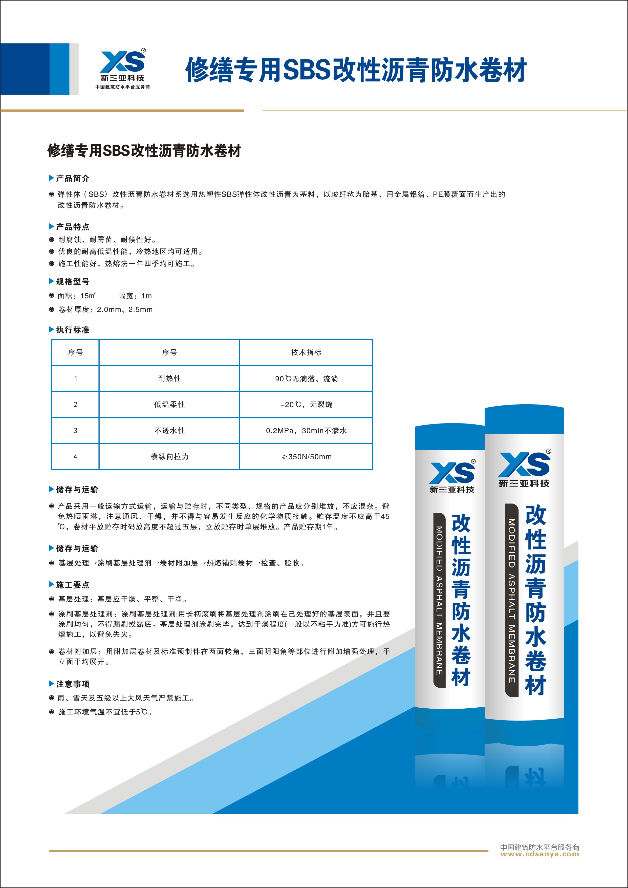 產(chǎn)品簡(jiǎn)介: 修繕專用SBS改性瀝青防水卷材,選用彈性體(SBS)改性瀝青為基料使用玻纖氈為胎基,并上、下表面覆PE膜而生產(chǎn)出的改性瀝青防水卷材。 規(guī)格:SBS I G PE PE 2.5mm 1m×15m