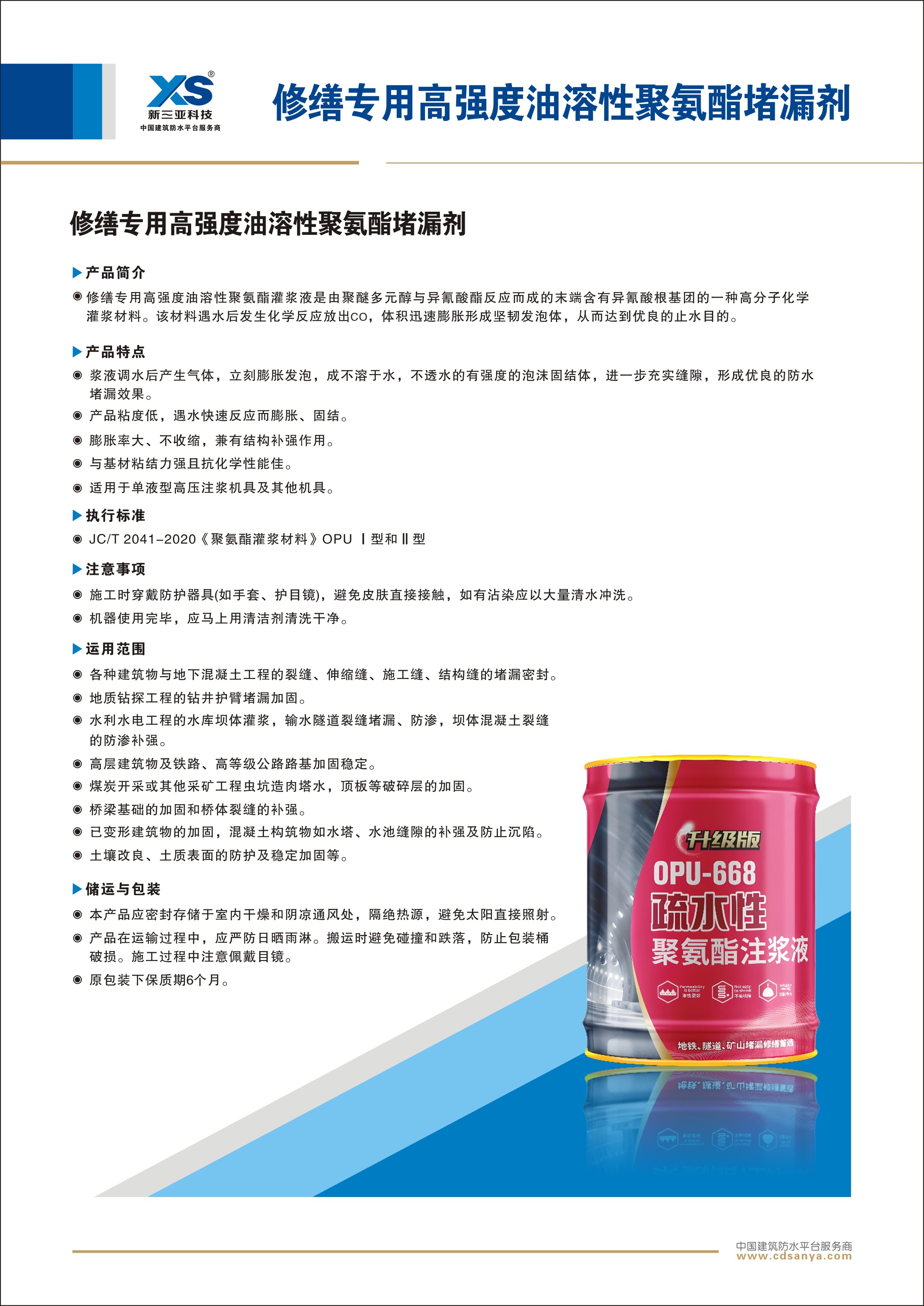| 高強(qiáng)度油溶性聚氨酯堵漏劑(Ⅰ型 疏水性) | |